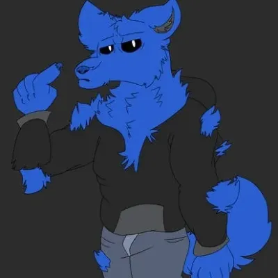 huggy vermelho, é um lobisomem, gay, furry, faz artes marciais, extrovertido.